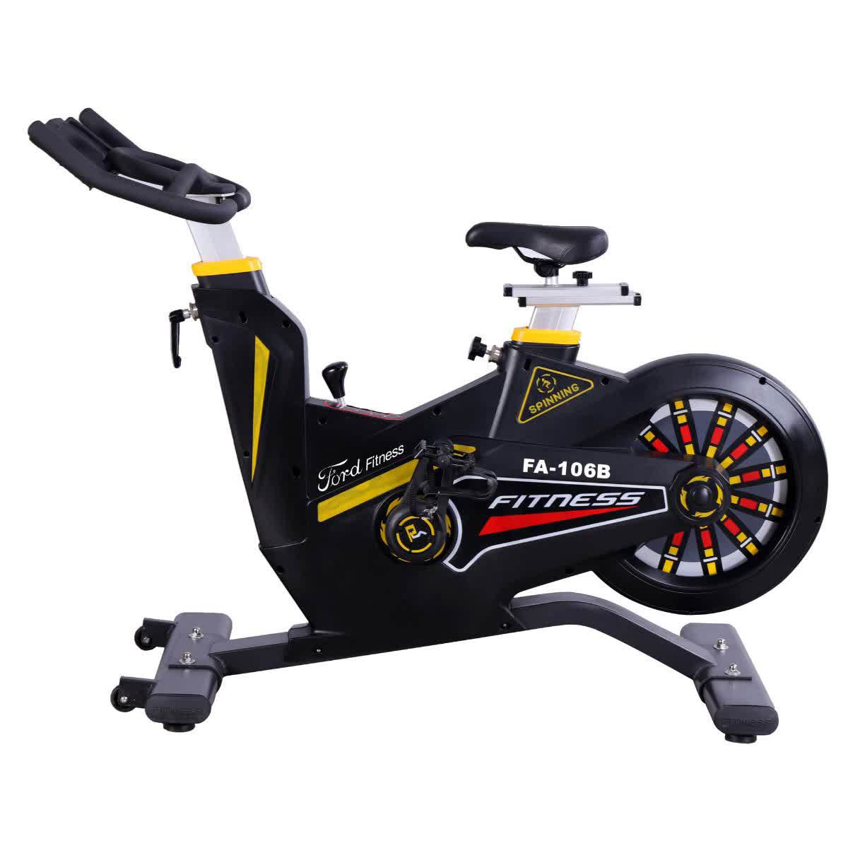 برای کاملتر شدن ویژگی ها و قابلیتهای اسپینینگ باشگاهی فورد فیتنس مدل FA106B، زین در چهار جهت مختلف و فرمان به صورت عمودی تنظیم میگردند تا ورزشکاران در بهترین و راحت ترین حالت بنشینند و رکاب بزنند. دستههای قابل تنظیم دوچرخه را به اشکال مختلف میتوان در دست گرفت که حس واقعی مسابقه را در تمرینات القاء میکند. به واسطه پوشانده شدن دسته با فوم ضدلغزش، به دستها فشار زیادی وارد نمیگردد. علاوه بر اینها، پدالها نیز از جنس ضد لغزش برخوردارند و مجهز به بندهای قابل تنظیم هستند تا برای قرارگیری پاها در وضعیت مناسب، تمرینات نه تنها موثر، بلکه بسیار راحتتر نیز میشوند.